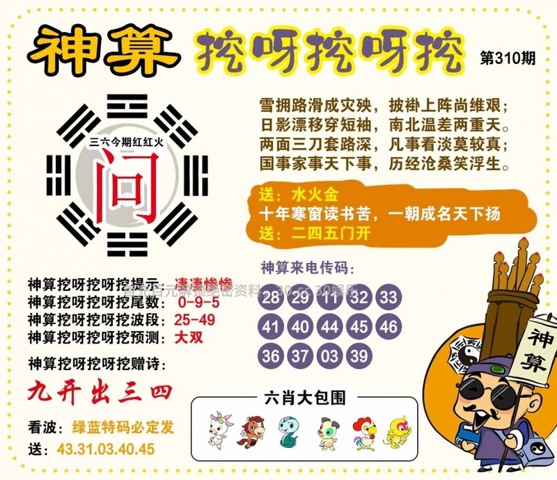 | 314期:六肖 | 马羊鸡猴猪虎 | 發00中 |